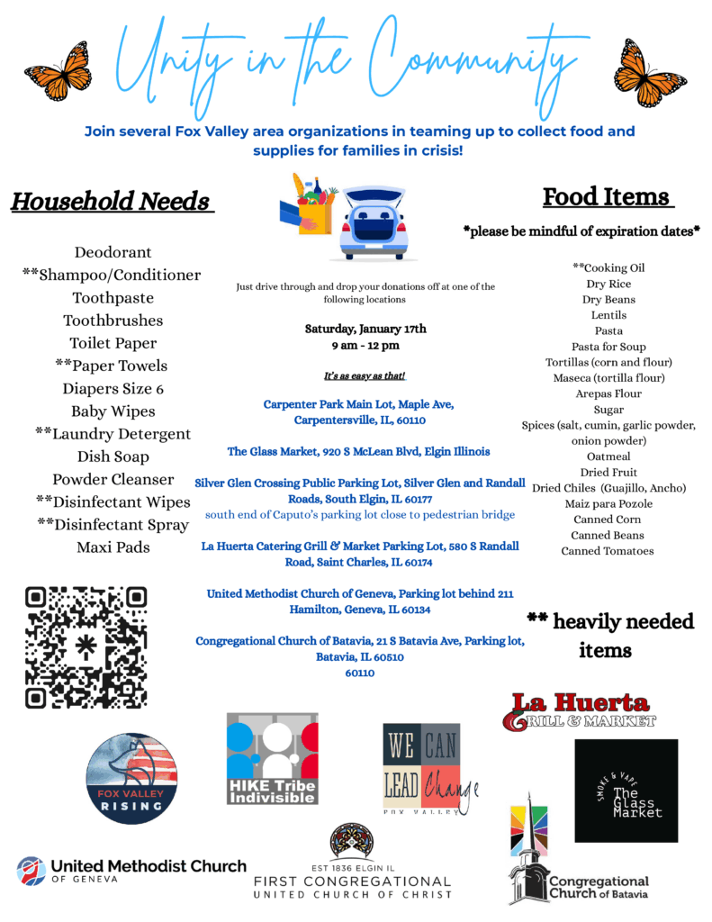 Dundee Dems are helping Unity in the Community – Food/Supplies Collection in Carpentersville, Tomorrow!