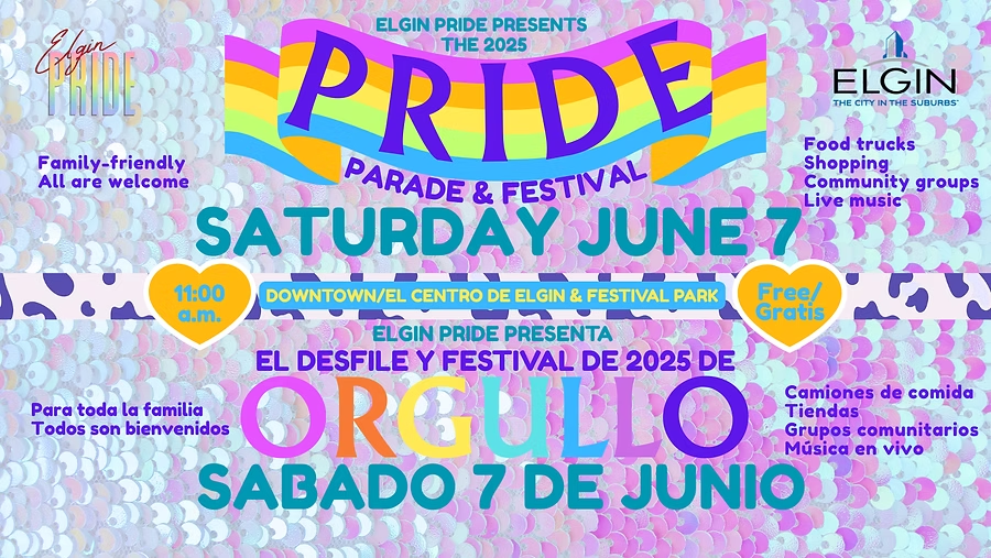 - JUN 7th – Elgin Pride Parade and Festival 11 AM more information